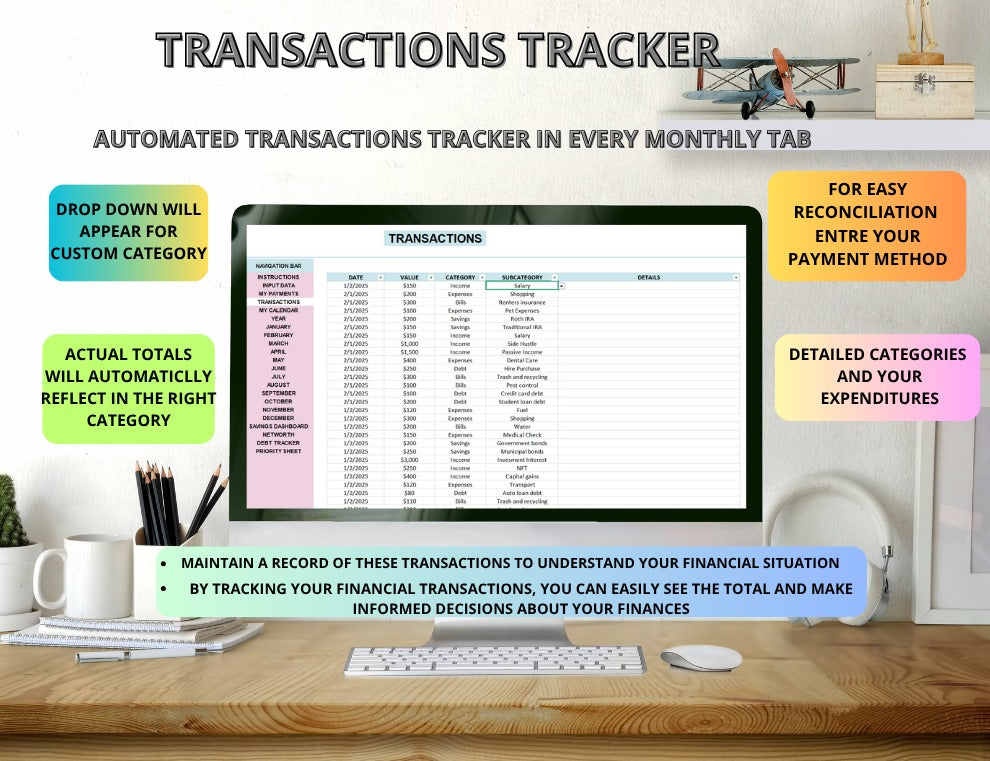 Take control of your money with this all-in-one budget planner. Track income, expenses, bills, savings, and debt with ease. Fully editable, automated, and ready to use in Excel or Google Sheets — perfect for staying organized and reaching your financial goals.