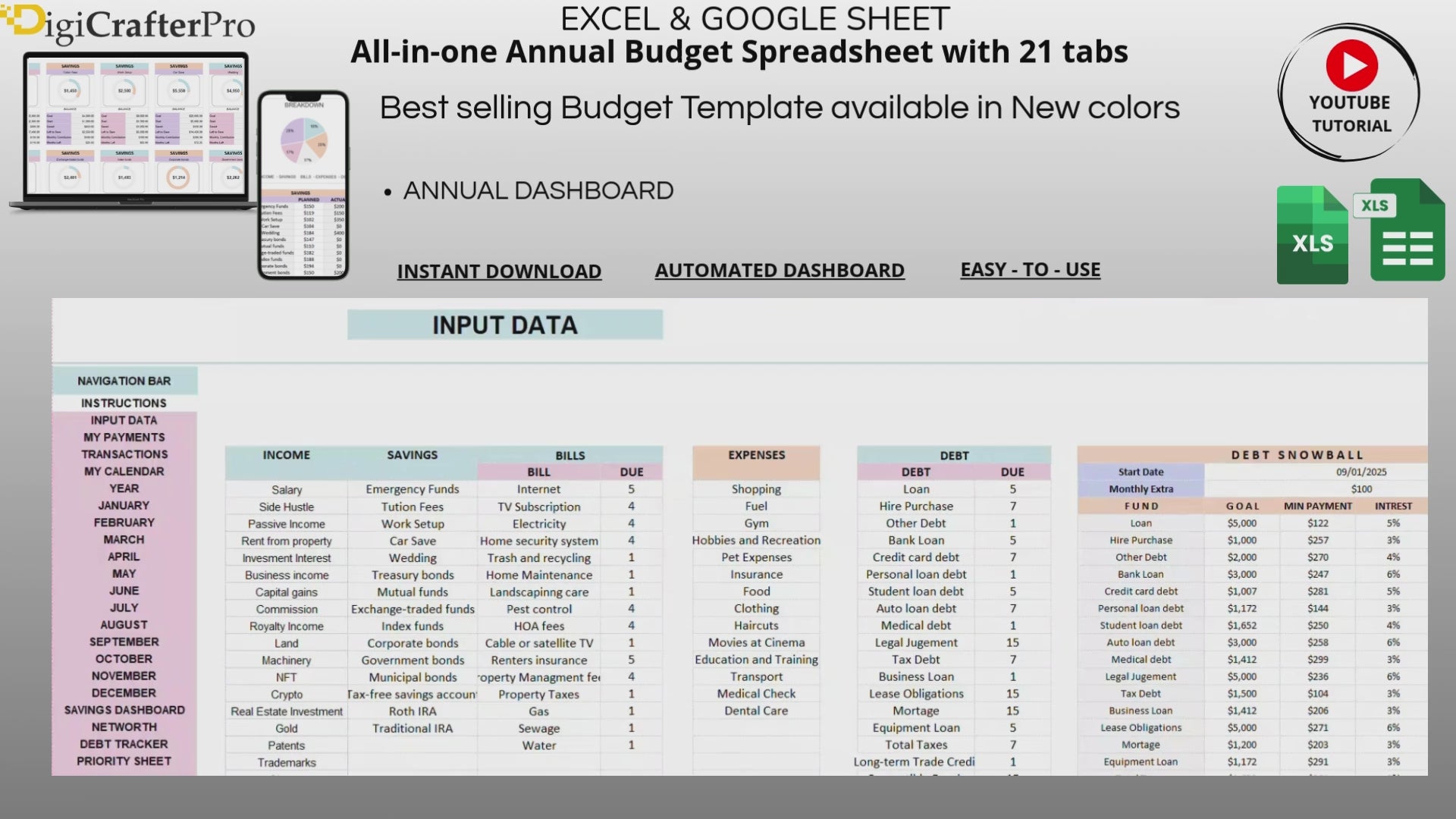 Ultimate Annual Budget Spreadsheet (Excel & Google Sheets)